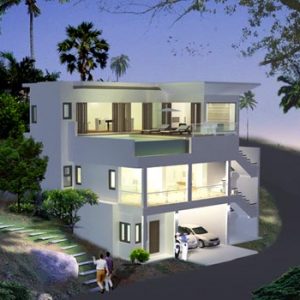 The third level enjoys a spacious open plan living area comprising of living room, dining room and kitchen with floor to ceiling windows on both sides of the house which allow for the majestic scenery and sea views to be enjoyed with cooling sea breezes all day.